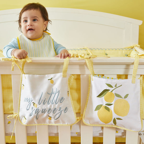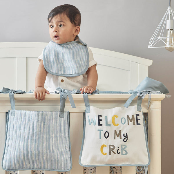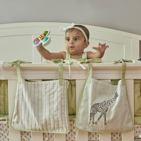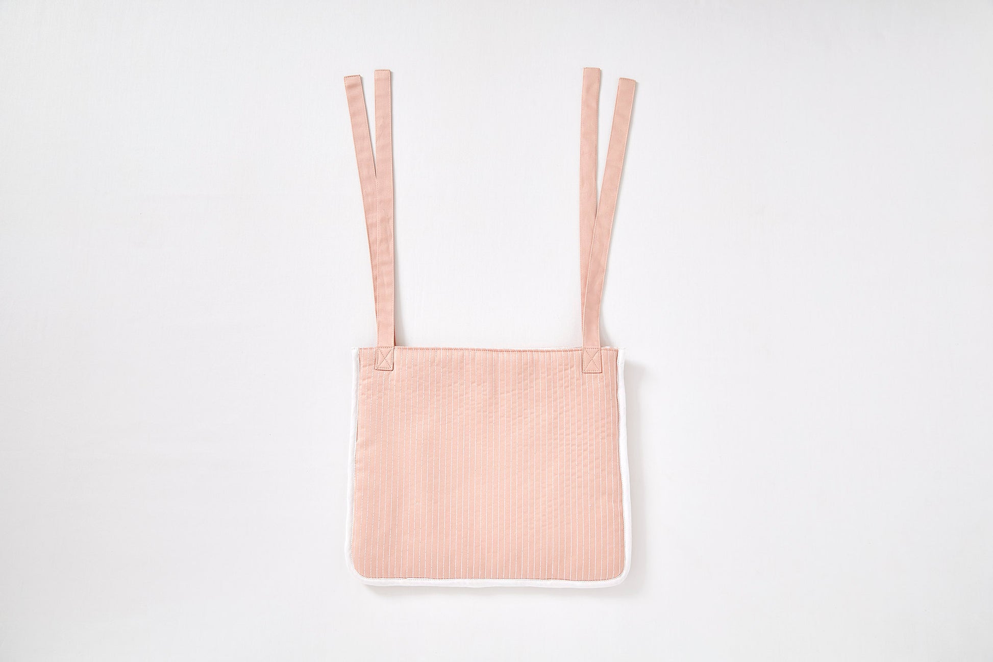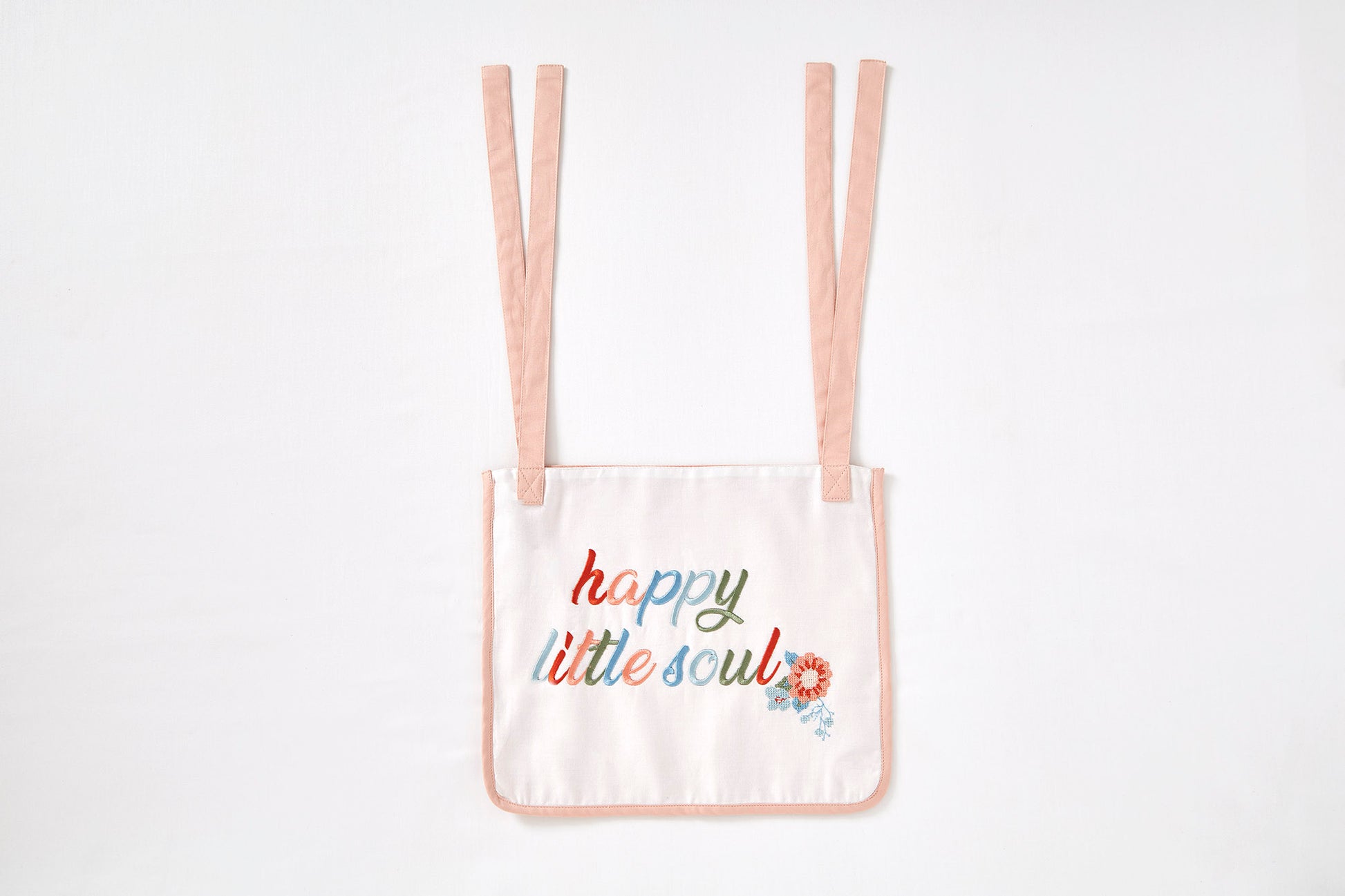 Soft blush tones with floral embroidery and 'Happy Little Soul' text. Perfect for keeping baby’s essentials handy. Classic pinstripes on the back add timeless elegance.