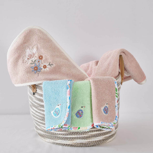 Delicately embroidered with butterflies and finished with floral piping, this Zero Twist Terry Towel set is ultra-soft and extra absorbent, ensuring a gentle and luxurious experience for your babyís delicate skin.