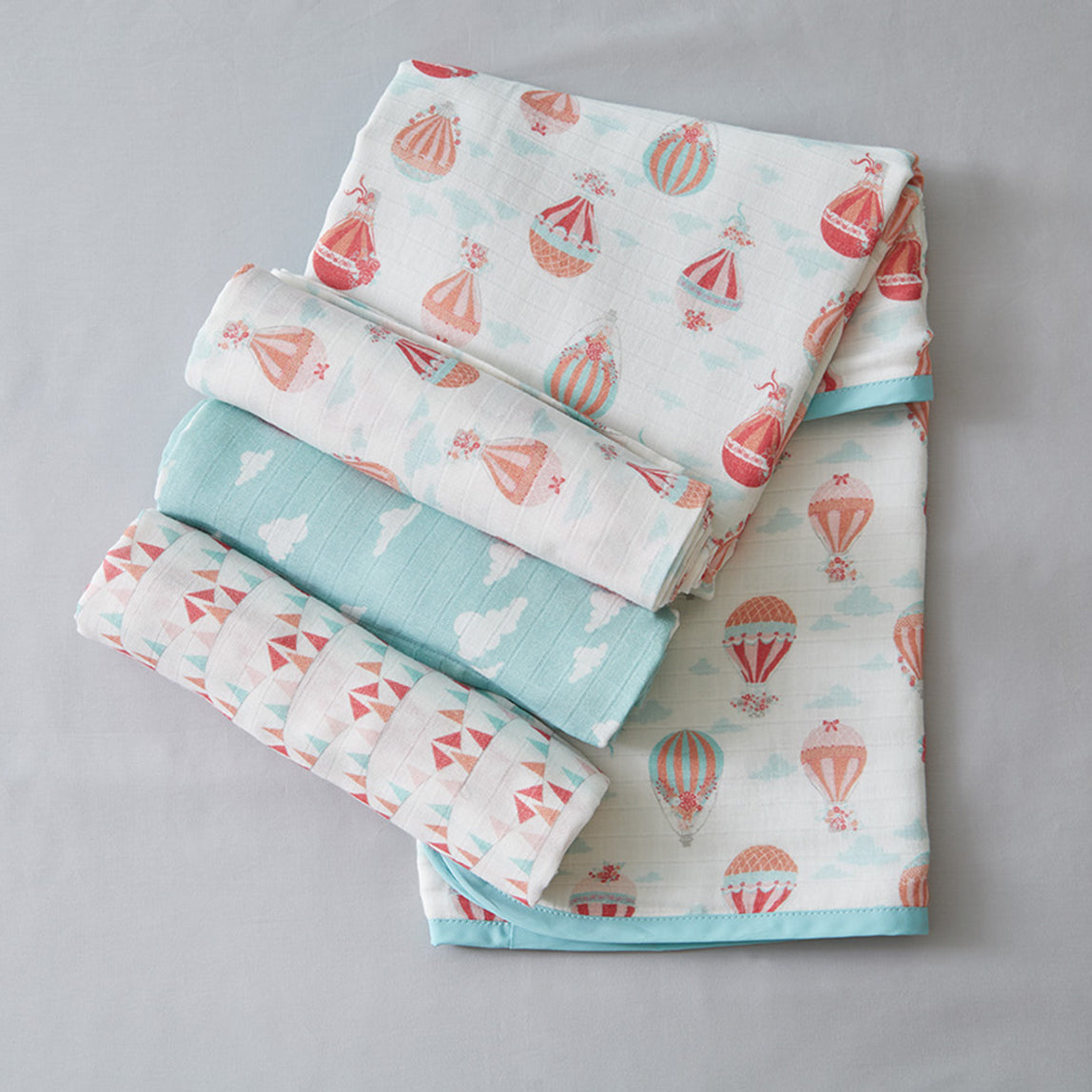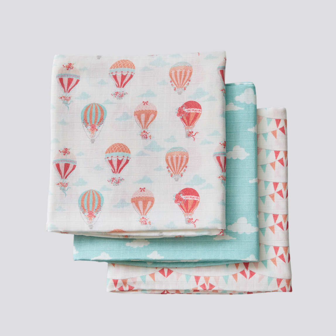Made from premium muslin cotton, these swaddles showcase playful parachute and cloud prints along with colorful confetti dots. The breathable, lightweight fabric keeps babies cool and comfortable, while the soft texture is gentle on delicate skin. Perfect for swaddling, nursing covers, or a cozy cuddle anytime.