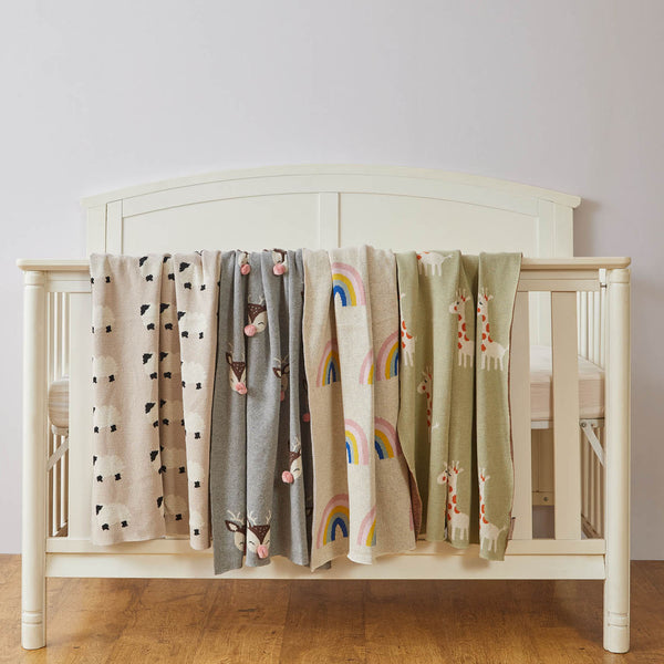 A timeless classic, the Sheep Knitted Blanket brings a touch of warmth and charm with its soothing neutral tones and adorable sheep pattern. The ultra-soft 100% cotton knit ensures breathability and coziness, making it perfect for delicate newborn skin. Lightweight yet warm, this blanket is ideal for stroller rides, nap time, and snuggles.