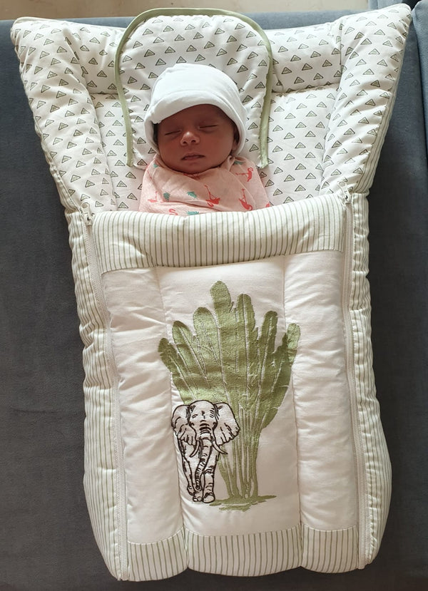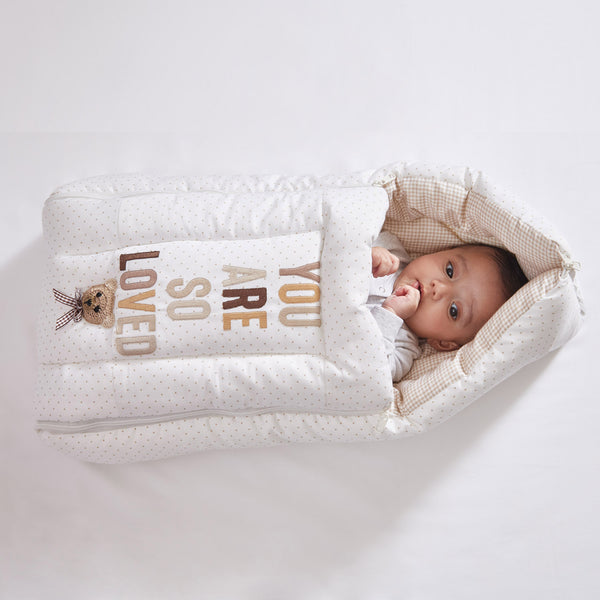 Choo-choo to dreamland! This soft cotton sleeping bag features an adorable embroidered train design with a checked border, perfect for little adventurers. The cozy cushioning ensures comfort, while the easy full-zip opening makes diaper changes and transitions seamless.